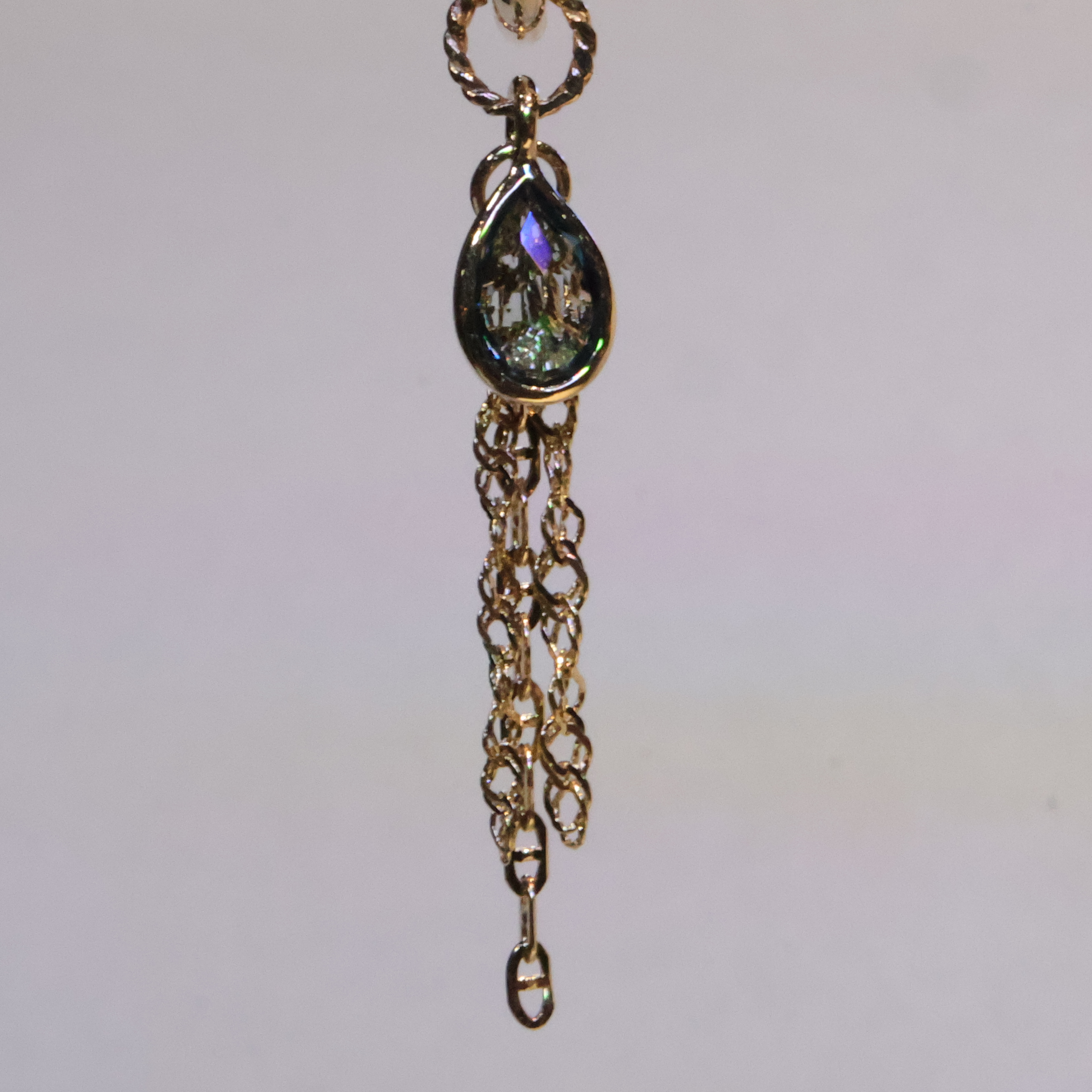 Tear-Drop Charm with Draped Tassel Chains - Gold / London Blue Topaz